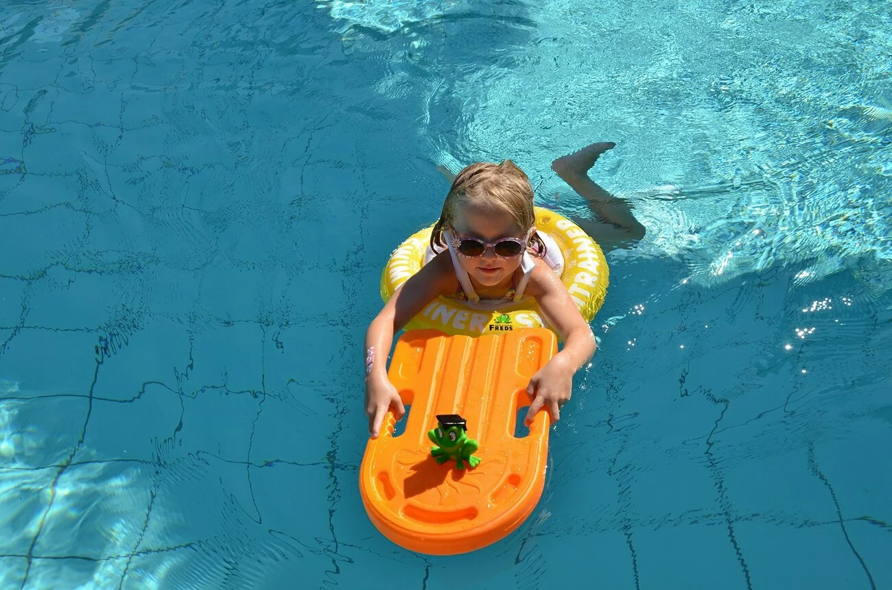 Очень важно создать идеальные условия для первого знакомства ребёнка с большой водой, чтобы она стала ему другом на всю остальную жизнь. Это знакомство должно быть абсолютно безопасным и полным веселья. Для этого расположенная в Германии компания FREDS SWIM ACADEMY GmbH изобрела в своих школах и запатентовала трёхэтапную систему обучения детей плаванию при помощи надувного круга SWIMTRAINER "Classic".